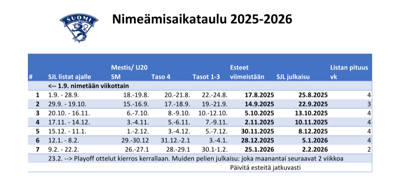 TÄRKEÄÄ ASIAA JOUKKUEILLE